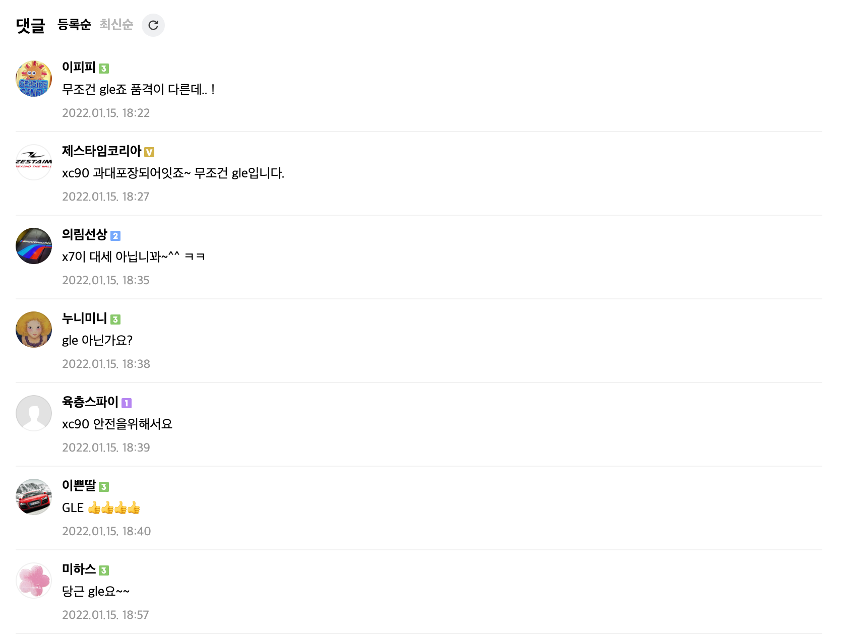 그 삼각별이 뭐라고 생각하고 있었는데 네이버에 XC90 vs GLE 로 검색을 해보니 아래와 같은 글을 봤다.