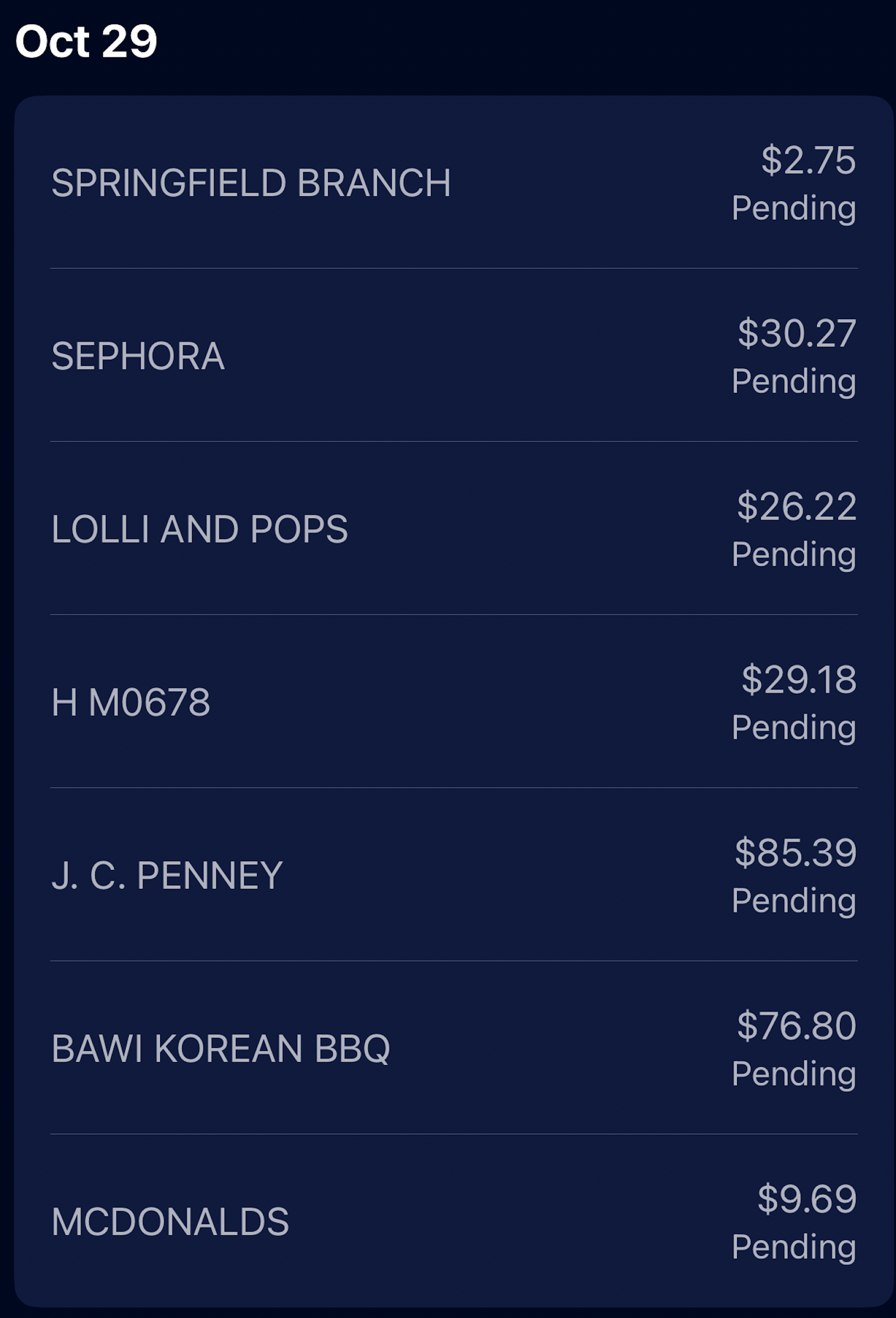 그래서 결제를 하려는데 AMEX를 들어가보니, 오늘 내가 돈을 쓴 내역이 보이더라.